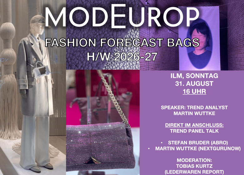 Welche Themen, Trends, Farben und Materialien für Schuhe und Taschen im Herbst/Winter 2019/20 wichtig werden, hat ModEurop Trendexerte Martin Wuttke von der Berliner Trendagentur …
